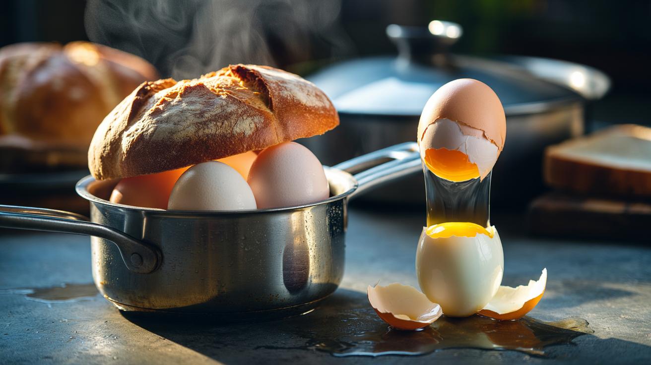 - 🍞 Step-by-step: drain most water, add a splash, cover eggs with a bread heel and lid for 30–60 seconds, then peel from the blunt end where the air cell sits; replace the heel after large batches.